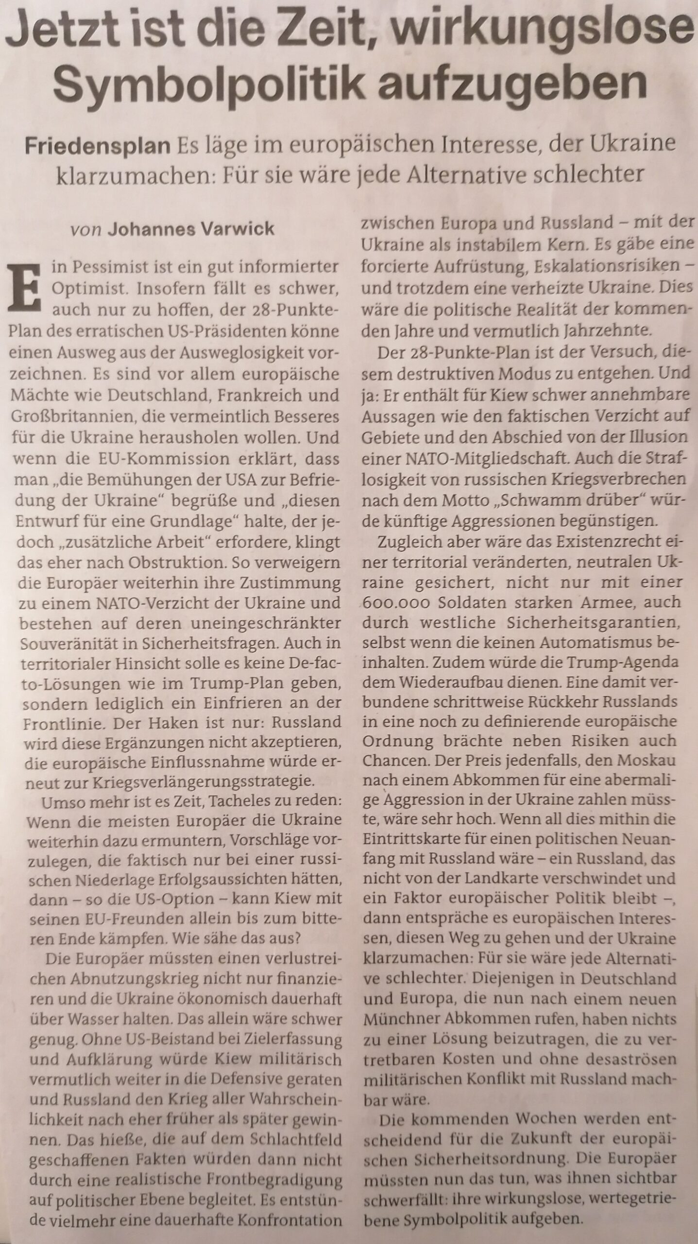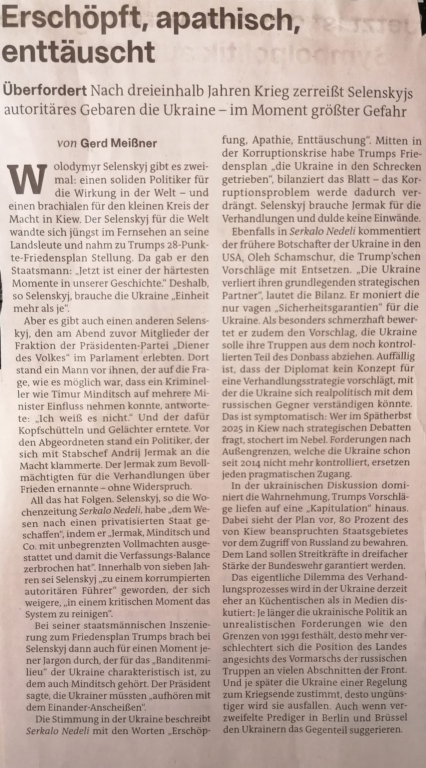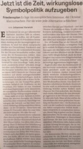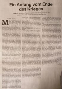 Ich habe hier vier bemerkenswerte Beitrage aus der Wochezeitung „der Freitag“ eingefügt. Sie analysieren die politisch-militärische, wirtschaftliche und mentale Lage in der Ukraine und beweisen, dass jedes Abwarten auf (illusorische) Siege des angegriffenen Landes weiter in den Abgrund führt.