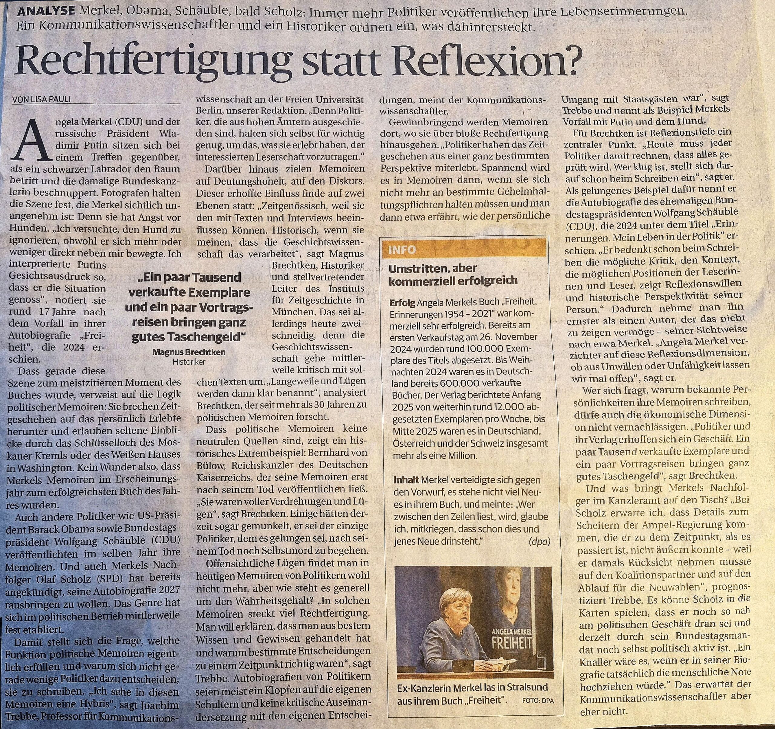 Merkels Buch hat eine irrsinnige Auflage, obwohl es offenbar nichts Neues preisgibt. Da der Verlag schon vor dem Erscheinen des Titels Millionen an die Merkel ausgeschüttet hat, ist die Dame jetzt Multimillionärin. Wofür, fragt man sich da. Diese Frau hat uns hundertausende illegale Einwanderer beschert und der AfD damit zu einem rasanten Aufschwung verholfen. Und jetzt quatscht sie der aktuellen Politik auch noch irwitzig dazwischen.