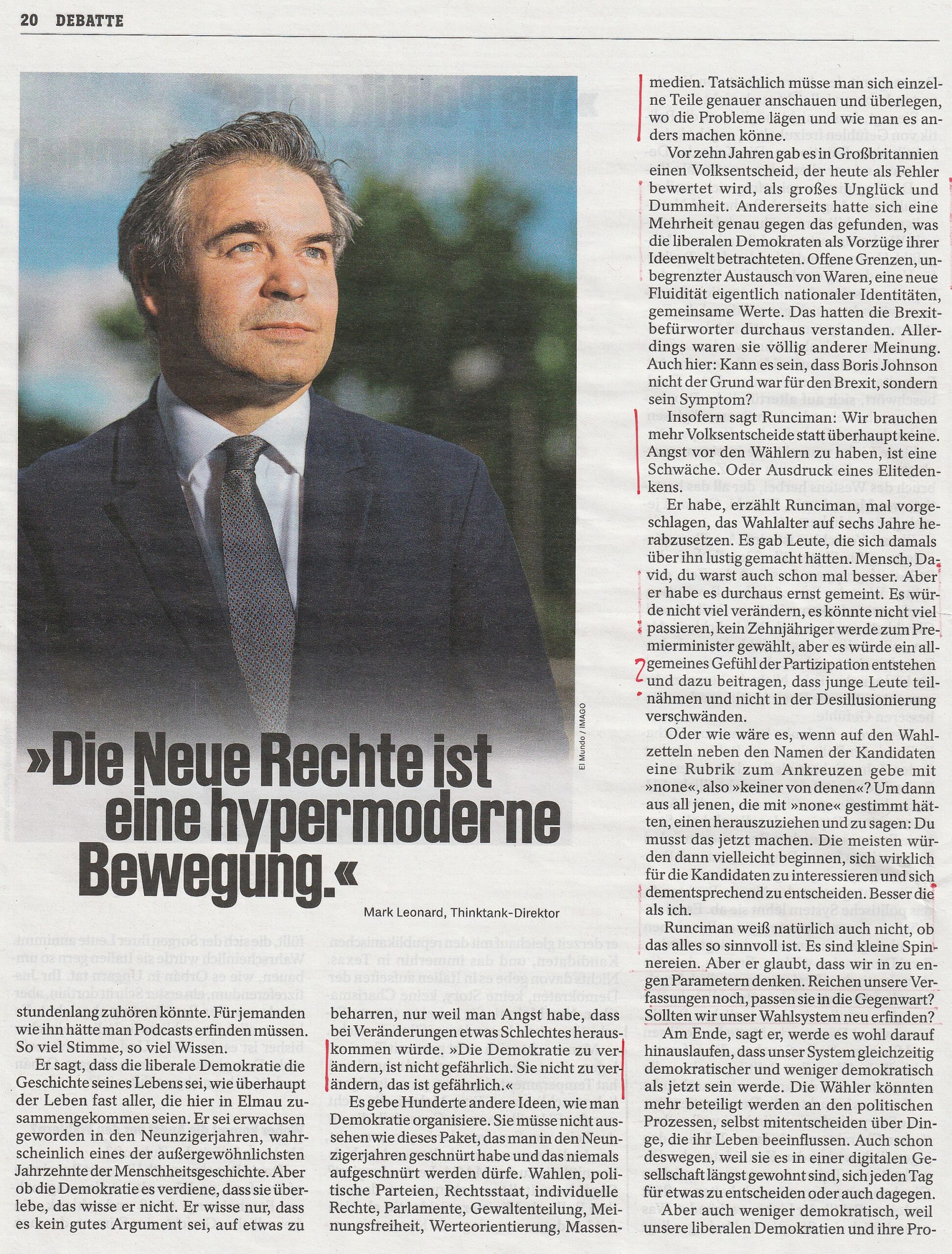 Zugegeben: Die Frage ist provokativ. Und man ist geneigt, sofort mit JA zu antworten. Eine Recherche des SPIEGEL („Verdient es die Demokratie, dass sie überlebt“) hat ergeben, dass dieses JA vakant, genauer gesagt an eine Reihe von Bedingungen zu knüpfen ist. Das weltweite Anwachsen der rechten Bewegungen im kapitalistischen Westen  signalisiert, dass viele Menschen vom bislang geltenden Wertesystem, besser gesagt: von seiner fehlerhaften Umsetzung enttäuscht sind und deshalb Alternativen suchen. Vieles läuft dabei falsch, wirkt bedrohlich und ist es auch. Was nicht heißt, dass alles so bleiben sollte, wie es ist.  Vielmehr muss sich auch die Demokratie verändern – den Zeichen der Zeit folgen und kommenden Übeln gegenüber wehrhaft werden und bleiben. Wobei die wichtigen Momente/Inhalte der Demokratie … Hoffnung, Mitgefühl und Schuld  … nicht etwa aufgegeben werden dürfen, sondern vielmehr auf höherem Niveau weiter befördert und durch neue Elemente ergänzt werden müssen. Dem Populismus, der Angst, Ekel, Rache und Nationalismus mit sich führt, muss ein bevölkerungsnahes Zukunftmodell entgegengestellt werden. Wobei Letzteres ein durch mutige Experimente generiertes  sinnvolles Update beinhalten muss. Über allem aber steht:  Die Demokratie muss künftig erfüllen, was sie verspricht.